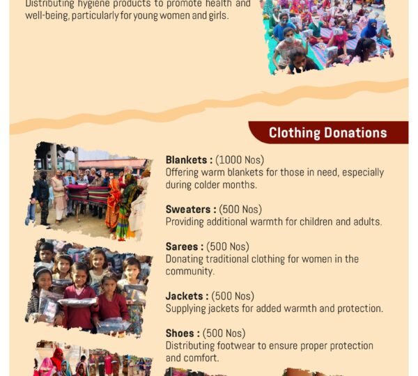 In an effort to preserve dignity and tradition, the Mom Foundation distributes **500 sarees** to women in the community. This initiative provides them with essential clothing, fostering a sense of pride and cultural identity.