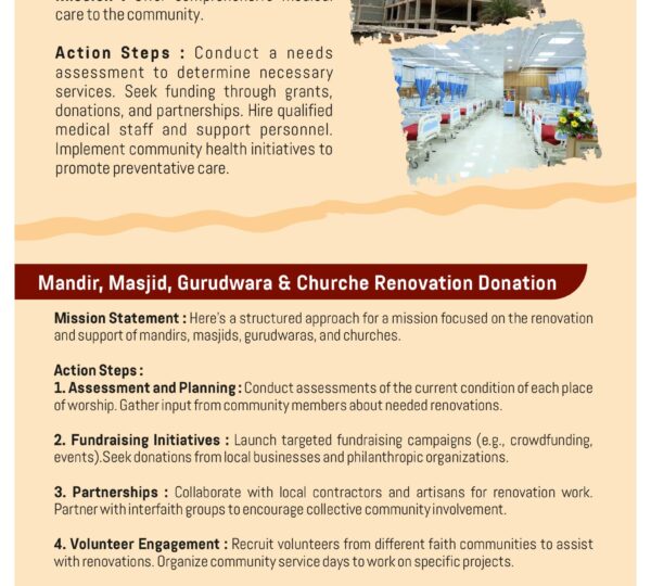 Hospital & Mandir, Masjid, Gurudwara & Churche Renovation Donation