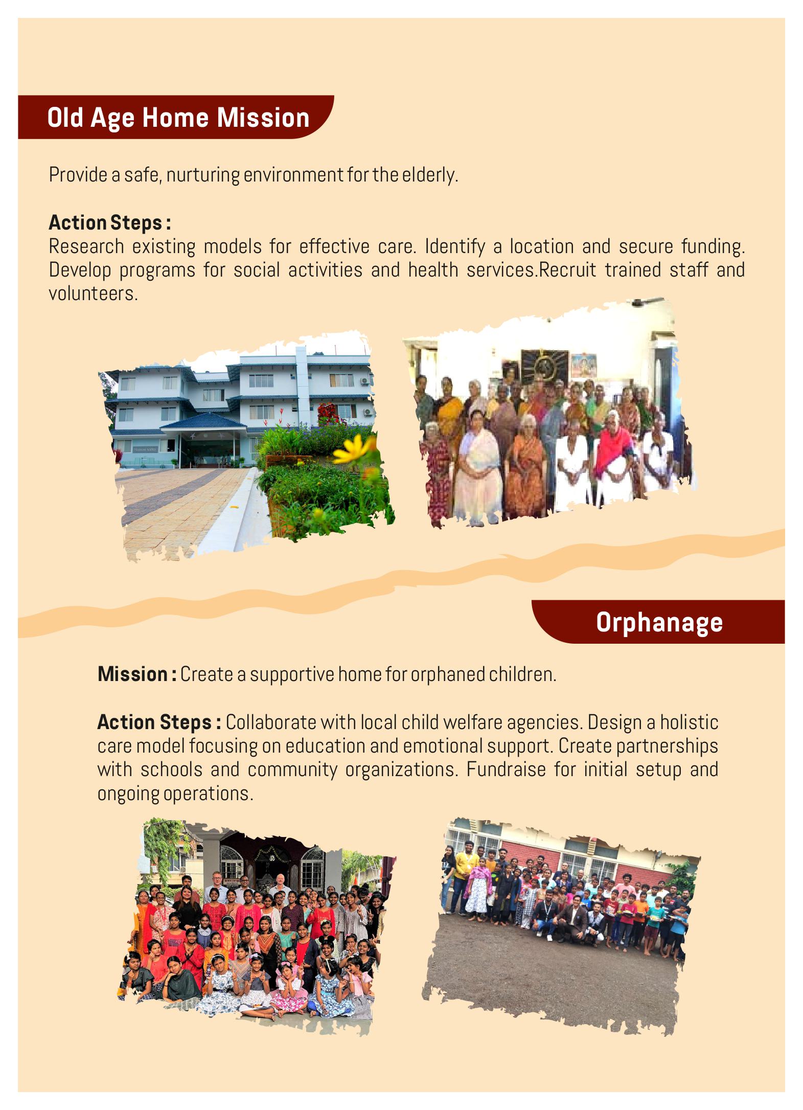 - Develop a variety of programs that include social activities, health services, and mental well-being support tailored to the needs of the elderly.